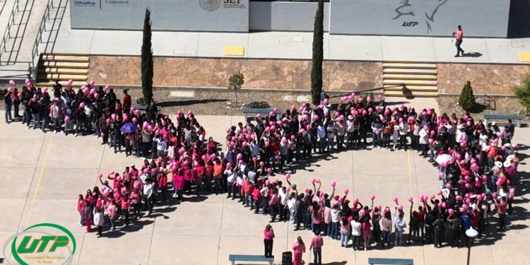 Estudiantes, docentes y personal general de la Universidad Tecnológica de Parral (UTP) realizaron la Caminata Rosa dentro de las instalaciones, como un acto simbólico para conmemorar el Día Internacional de la Lucha contra el Cáncer de Mama, que se conmemora este 19 de octubre.