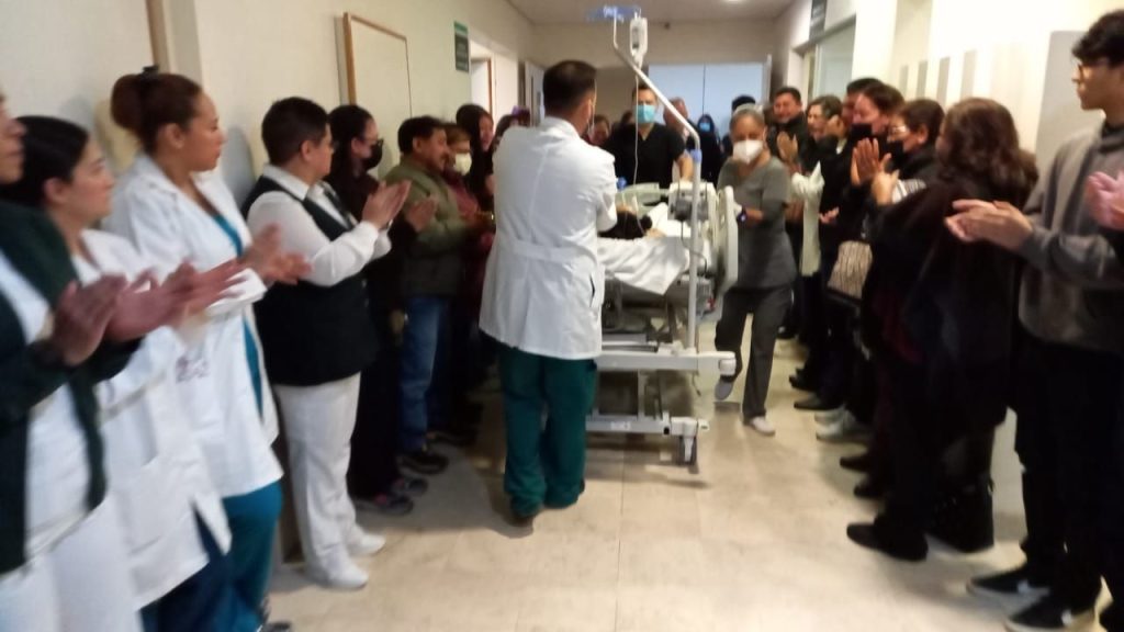 Los trabajadores de esta unidad hospitalaria acompañaron a la donadora con una valla humana, en medio de sentidos aplausos.