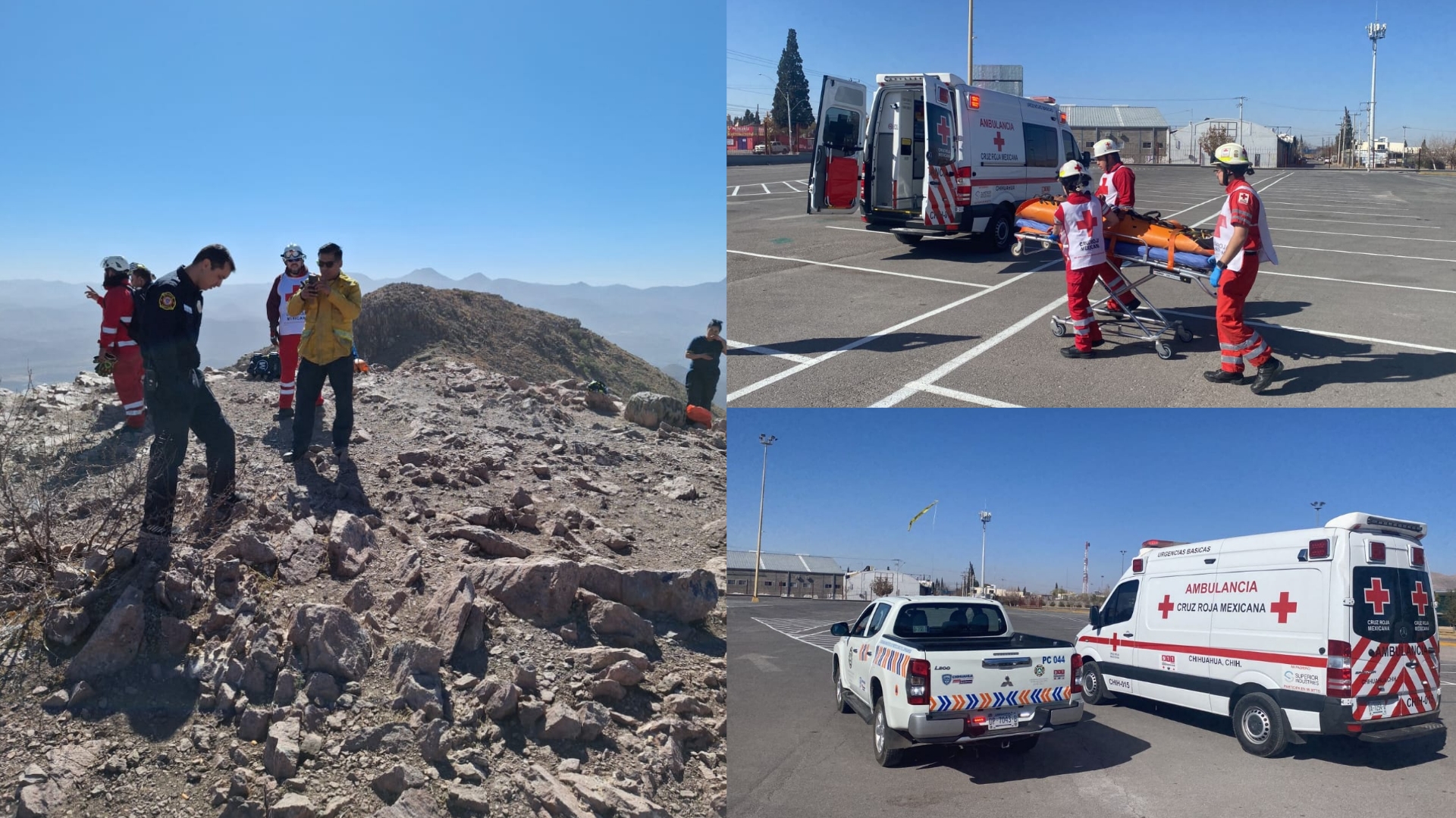 El rescate se efectuó desde el Cerro Grande en la ciudad de Chihuahua, donde un joven senderista resultó herido al caer en un terreno.