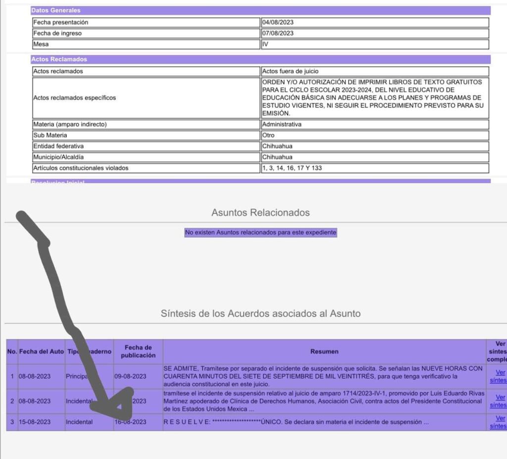 Es así que en tan solo 12 días, se presentó y se dio ingreso al recurso legal, y finalmente se resolvió como improcedente en los actos administrativos reclamados, por lo que se determinó declarar “sin materia el incidente de suspensión”, según consta en la Síntesis de los Acuerdos Asociados al Asunto.