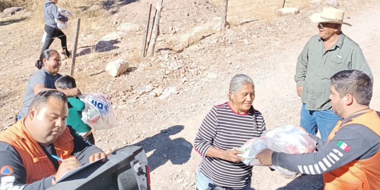 Como parte de estas acciones se distribuyeron insumos que incluyeron 250 despensas, 100 cobijas y 100 colchonetas, en beneficio de habitantes de las comunidades Ciénega Blanca, Babícora de Conoachi, Urichique y Yepachi, en el municipio de Temósachic.