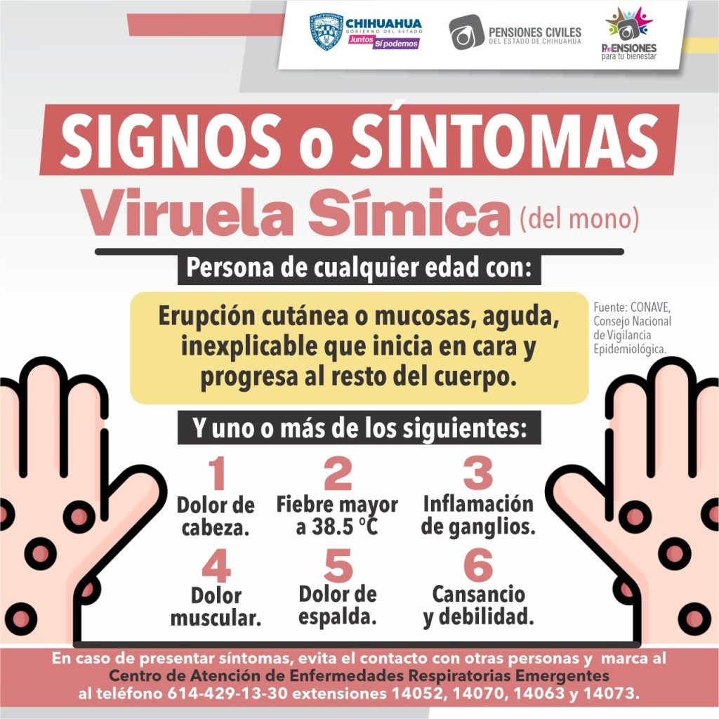 La Dirección Médica de Pensiones Civiles del Estado (PCE) informa sobre los síntomas y medidas para la prevención de la enfermedad sintomática denominada Viruela Símica o Viruela del Mono.