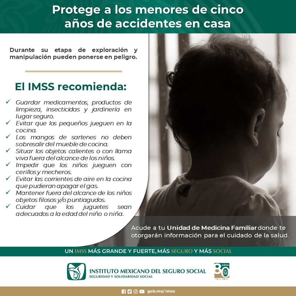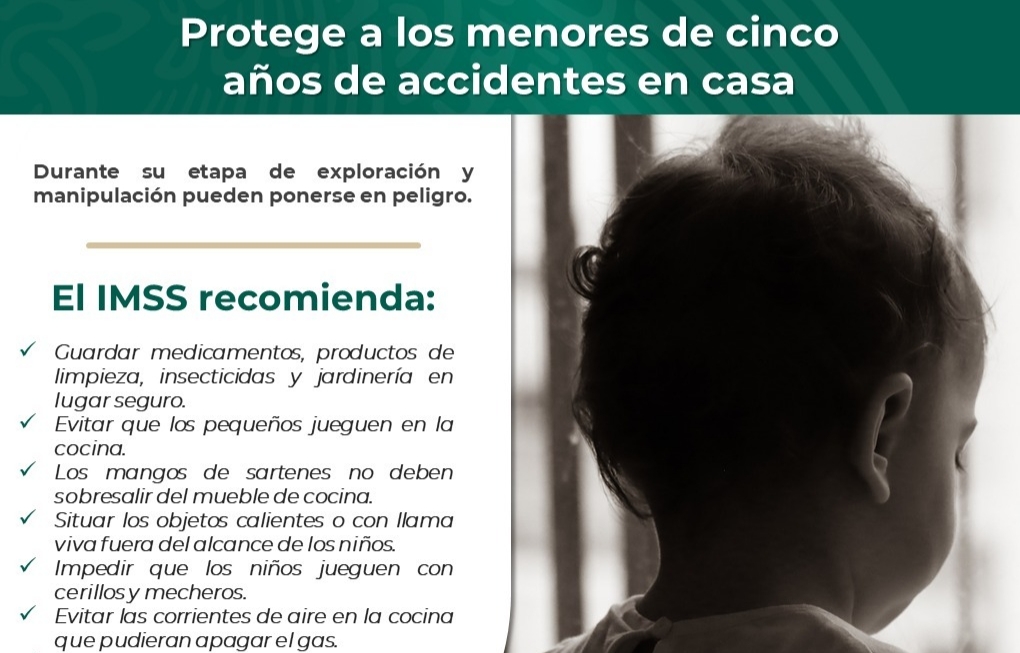 El Instituto Mexicano del Seguro Social (IMSS) en Chihuahua recomienda a la ciudadanía a cuidar el entorno de los niños y niñas menores de cinco años, principalmente dentro del hogar, para evitar accidentes.