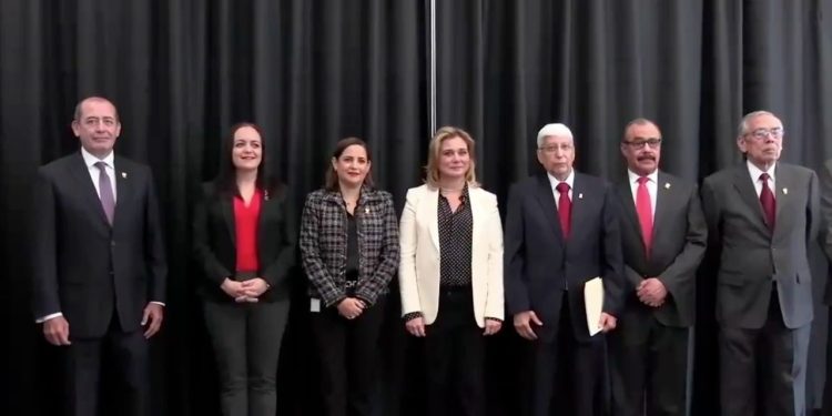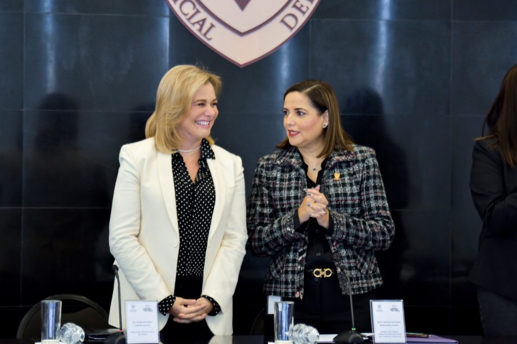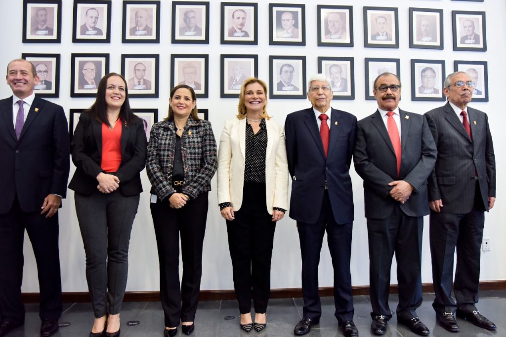 Estuvieron presentes la titular del Poder Ejecutivo, María Eugenia Campos Galván; en la representación del Poder Legislativo, la diputada Margarita Blackaller, y en su calidad de anfitriona y presidenta del Poder Judicial del Estado, magistrada Myriam Hernández Acosta.