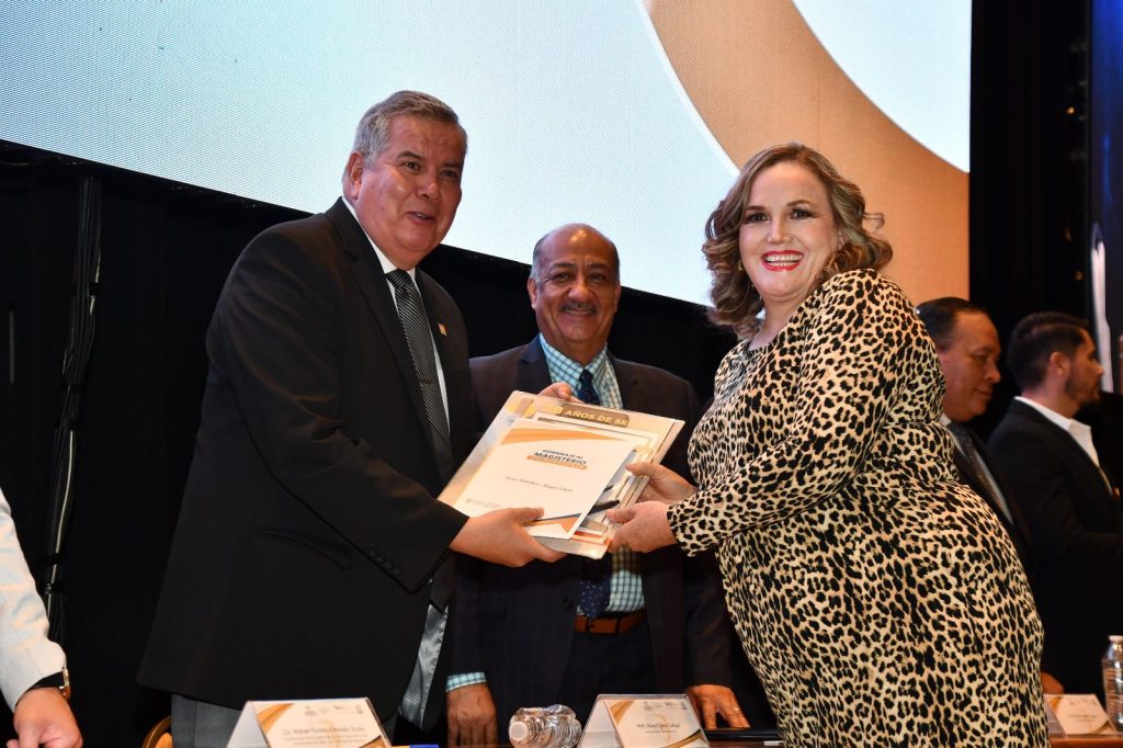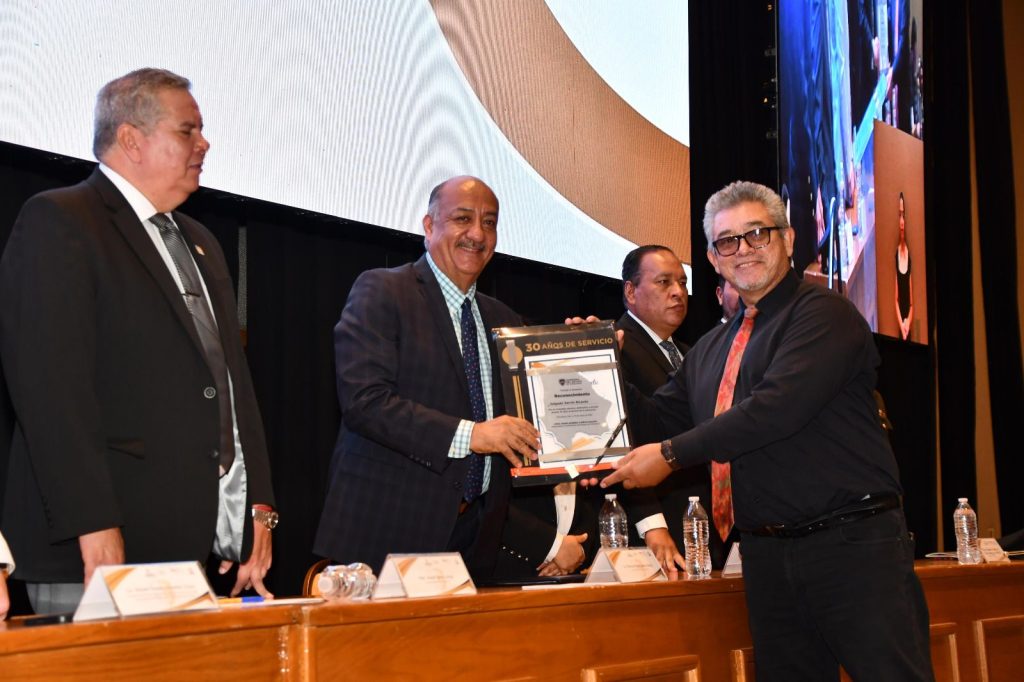 Las autoridades entregaron estímulos económicos, medallas y placas a 312 trabajadoras y trabajadores de Educación Básica y Superior por sus años de servicio, además, se otorgaron 331 cheques correspondientes a la prestación denominada “Seguro Mutualista y Bipartita”.