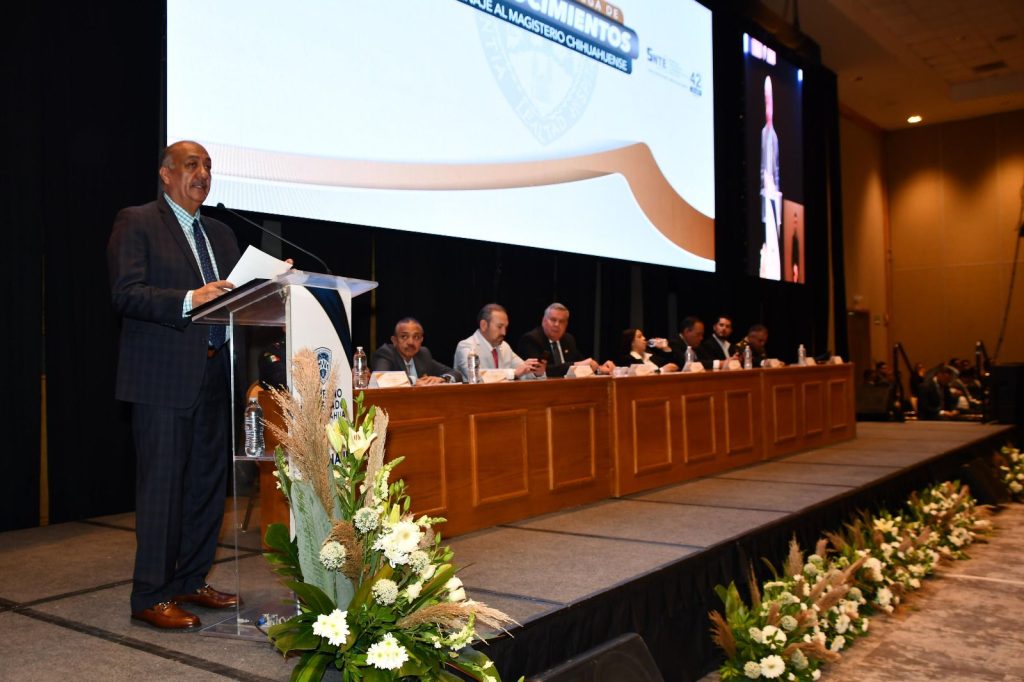 En representación de la gobernadora Maru Campos, el evento fue encabezado por el secretario de Educación y Deporte, Francisco Hugo Gutiérrez Dávila, acompañado por el secretario general de la Sección 42 del Sindicato Nacional de Trabajadores de la Educación (SNTE), Manuel Quiroz Carbajal.