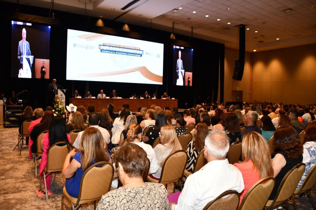 En el marco del Día del Maestro, se llevó a cabo en el Centro Exposiciones y Convenciones de la ciudad de Chihuahua una ceremonia de homenaje a plantilla educativa adscrita al subsistema estatal, en las diferentes regiones de la entidad.