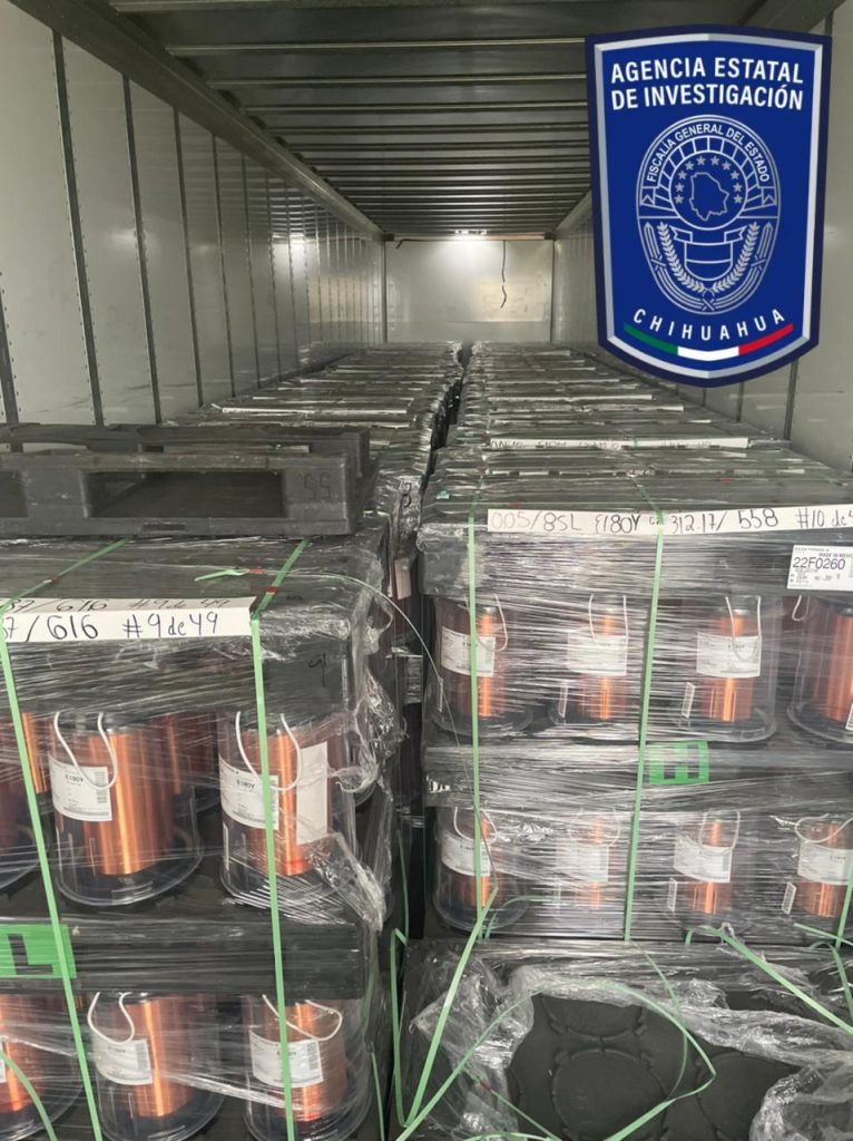 Como resultado de las labores de investigación conducidas por un agente del Ministerio Público de la Fiscalía de Distrito Zona Norte, en un trabajo coordinado con la Agencia Estatal de Investigación, se logró recuperar en menos de 24 horas un cargamento millonario de cobre que había sido robado con lujo de violencia en Ciudad Juárez.