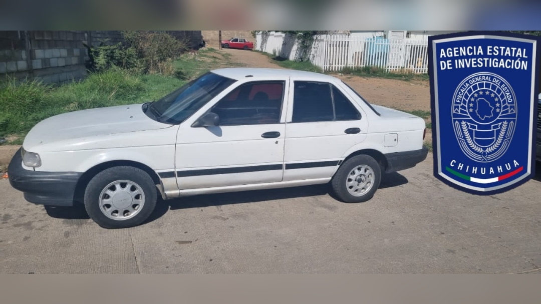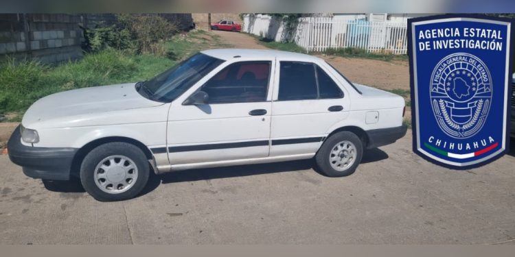 Al realizar labores de investigación y realizar recorridos en la ciudad, se localizó el vehículo de la marca Nissan, línea Tsuru, modelo 1998, de color blanco, con placas de circulación del estado de Chihuahua.