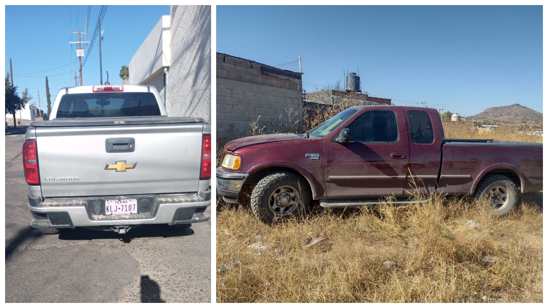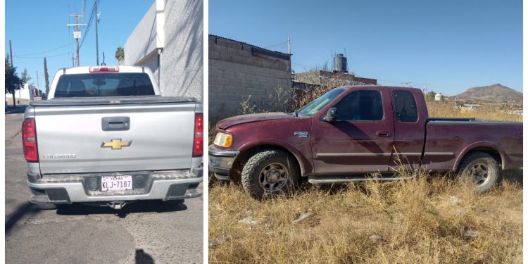 Durante la tarde de este jueves, elementos de la Dirección General de Seguridad Pública Municipal recuperaron dos camionetas con reporte de robo en hechos distintos, una de ellas sustraída mediante el uso de la violencia en la localidad de El Tule y la otra hurtada en la comunidad de Paso de Molina, municipio de San Francisco del Oro.