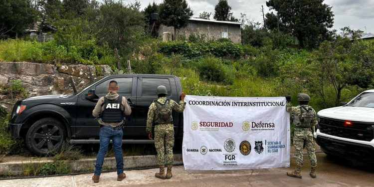 Las Bases de Operación Interinstitucional (BOI) desplegadas en el municipio de Guadalupe y Calvo, recuperaron una camioneta tipo pick up, de la marca Ford, línea F250, modelo 2010, de color negro, reportada como robada el 23 de junio de 2024, en la ciudad de Chihuahua.
