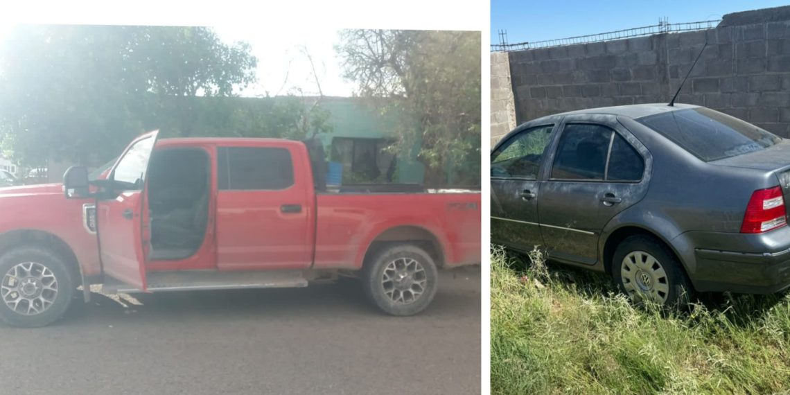 La primera diligencia tuvo lugar en ciudad Jiménez, donde los Policías Investigadores localizaron una camioneta tipo pick up marca Ford, línea F – 250 Super Duty, de color rojo, reportada como robada el 21 de febrero de 2023, en Ciudad Juárez.