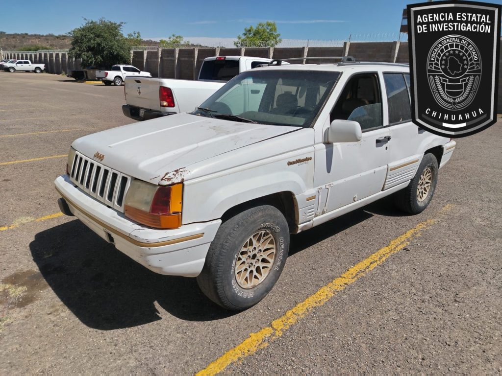 Elementos de la Agencia Estatal de investigación (AEI) del destacamento de Parral, recuperaron una camioneta de la marca Jeep, línea Grand Cherokee, modelo 1994, de color blanco, que contaba con reporte de robo interpuesto el día 23 de junio de 2008, en la ciudad de Chihuahua.