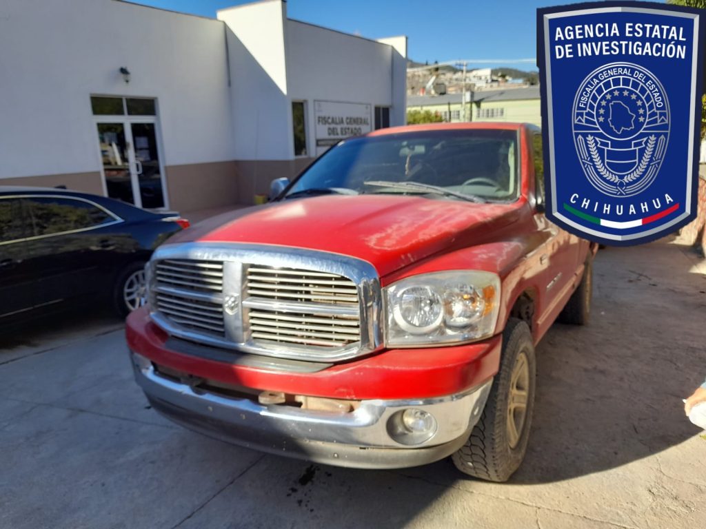 En la comunidad de San José de los Baylón, municipio de San Francisco del Oro, localizaron una camioneta tipo pick up, marca Dodge, línea RAM, modelo 2007, de color rojo, la cual contaba con reporte de robo del día 25 de noviembre del año en curso.