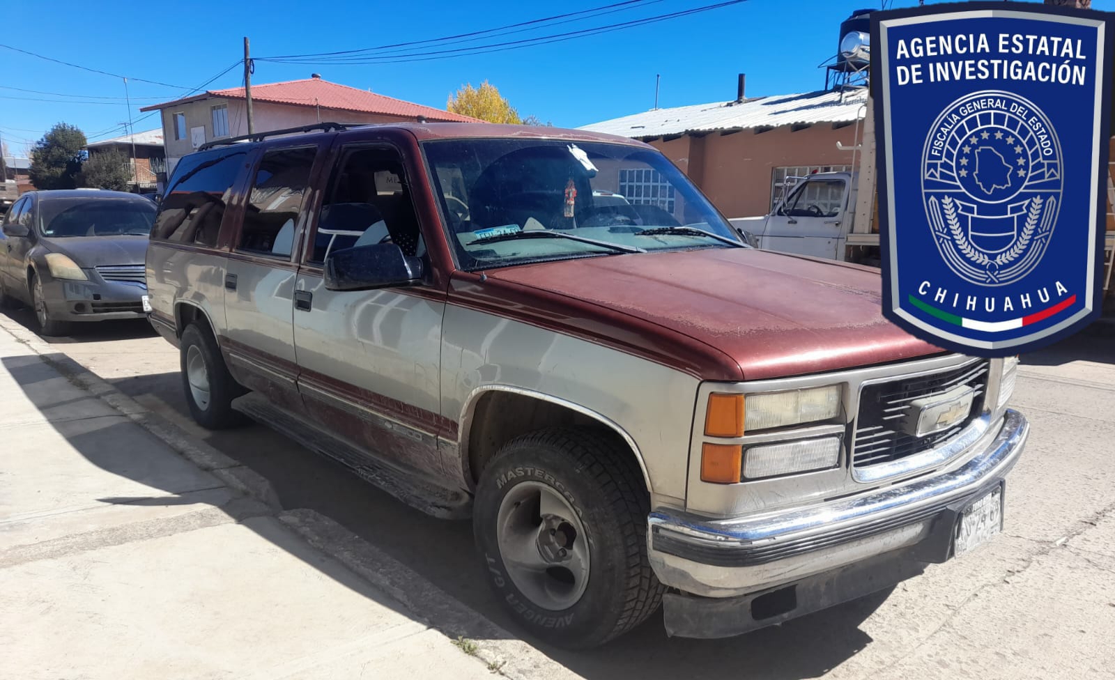 Elementos de la Agencia Estatal de Investigación (AEI), del destacamento en el municipio de Guachochi, aseguraron una camioneta marca Chevrolet, línea Suburban, modelo 1998, color guinda con gris, vehículo que fue robado el 20 julio del presente año, en la localidad Laguna de Aboreachi.