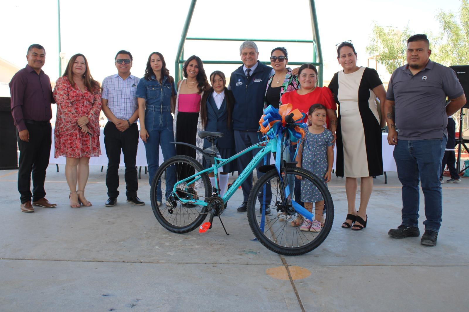 La Secretaría de Educación y Deporte (SEyD), entregó una bicicleta a la alumna Ingrid Paola Dávila Díaz, quien se desempeñó por un día como secretaria de Educación y Deporte, como parte del concurso “Gobernador(a) Infantil 2025”.