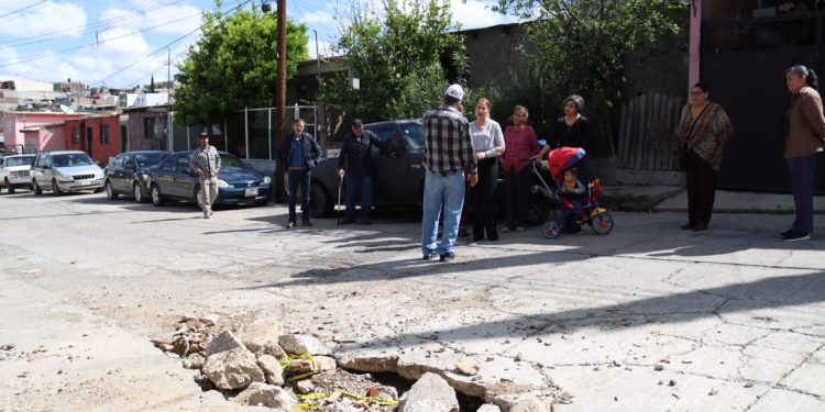 Los vecinos indicaron que después de una reparación por parte de la Junta de Aguas a una tubería en la calle Ocote, el pavimento quedó dañado y la tubería presenta grandes derrames de agua.