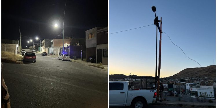 Por espacio de tres jornadas consecutivas personal de Servicios Públicos trabaja en la reposición de cableado del alumbrado de las colonias San Rafael, Las Palmas y Real de Victoria, esta vez por vía aérea y con cable de aluminio, para prevenir el robo de este material y por lo que se pide la colaboración de la ciudadanía para reportar comportamientos sospechosos al 911.