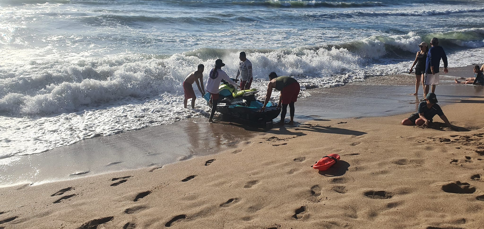 Se unieron elementos a bordo de la moto acuática Jetsky para llevarlos hasta la orilla, pues terminaron agotados por el esfuerzo al luchar contra la marea que los arrastraba.