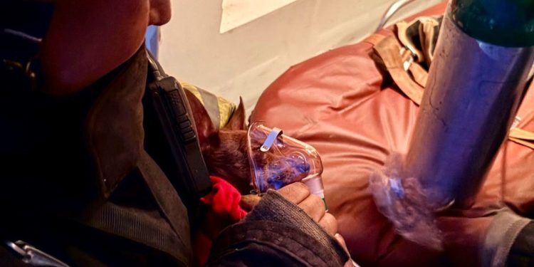Ante la situación, los bomberos forzaron la puerta principal para ingresar y comenzar las maniobras de control y sofocación. Durante la intervención se logró rescatar con vida a un perrito de raza Chihuahua, el cual presentaba signos leves de intoxicación por humo, por lo que fue atendido y estabilizado en el lugar con apoyo de oxigenación.