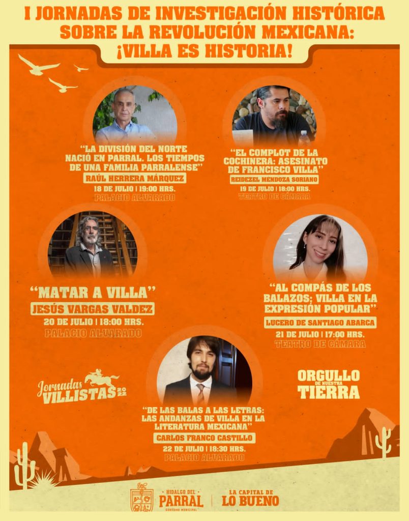 A casi un mes de que inicien las fiestas de Parral, el gobierno municipal dio a conocer la cartelera de conferencias magistrales que se presentarán en el marco de las Jornadas Villistas 2022, dentro del programa cultural organizado por la Jefatura del Archivo Histórico Municipal, titulado “I Jornadas de Investigación Histórica sobre la Revolución Mexicana: ¡Villa es Historia!”.