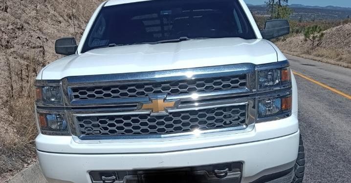 En el seguimiento de las investigaciones fue localizado en Guachochi, el vehículo robado de la marca Chevrolet, línea Silverado, modelo 2014, color Blanco, doble cabina.