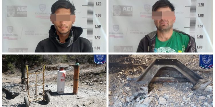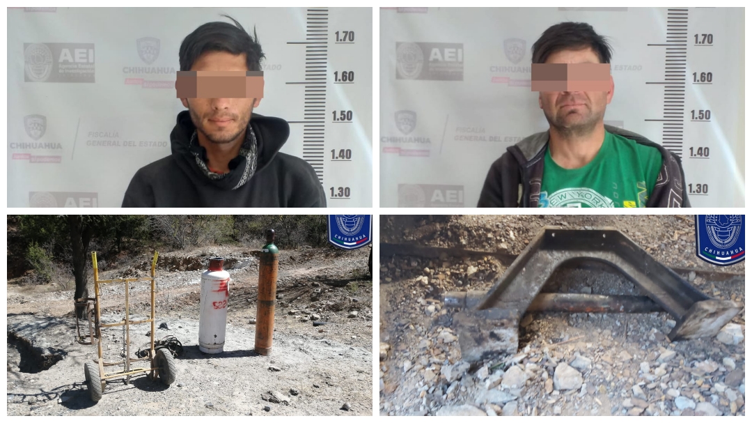 En atención a un reporte de robo en las instalaciones de la mina Alejandría, de Grupo México, en el municipio de Santa Bárbara, elementos de la Agencia Estatal de Investigación (AEI), detuvieron en el término legal de la flagrancia a Víctor Manuel A. F., y a Álvaro Jesús P. V., como probables responsables.