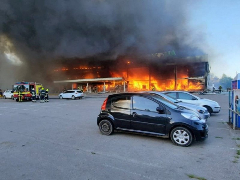 «El centro comercial está en llamas y los equipos de rescate están luchando contra el fuego», escribió el presidente ucraniano Volodimir Zelenski en Telegram.