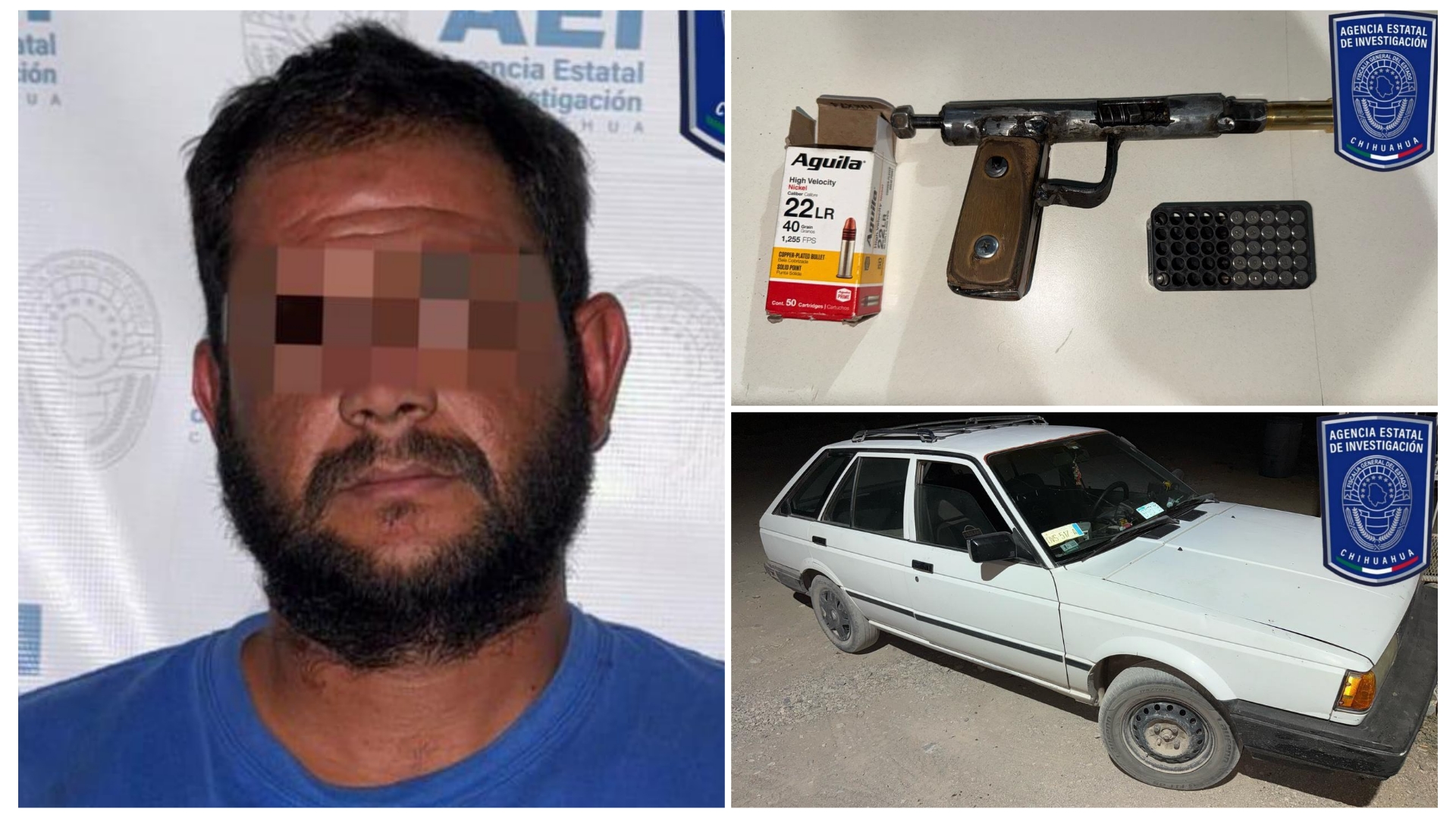El afectado pidió auxilio y reportó lo ocurrido a los Policías Investigadores, quienes activaron un operativo de búsqueda que permitió localizar momentos después a Carlos Abraham S.G. en calles céntricas del referido municipio, en donde conducía el automóvil descrito por la víctima; se le aseguró una pistola hechiza calibre .22, así como una caja de cartuchos del mismo calibre.