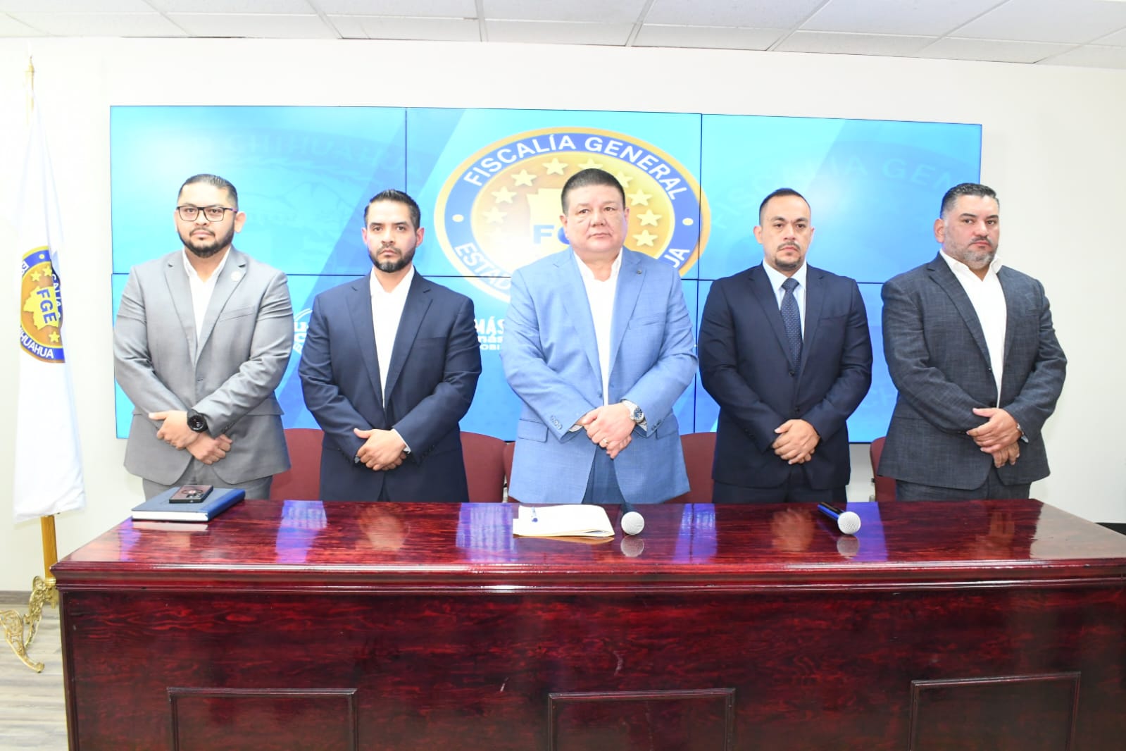 En rueda de prensa, el fiscal General del Estado, César Jáuregui Moreno, dio a conocer los nombramientos que fueron acordados con la gobernadora Maru Campos Galván, para ocupar los puestos de fiscal Especializado en Operaciones Estratégicas, fiscal de Distrito Zona Occidente, fiscal de Distrito Zona Sur y al Director de la Agencia Estatal de Investigación (AEI).