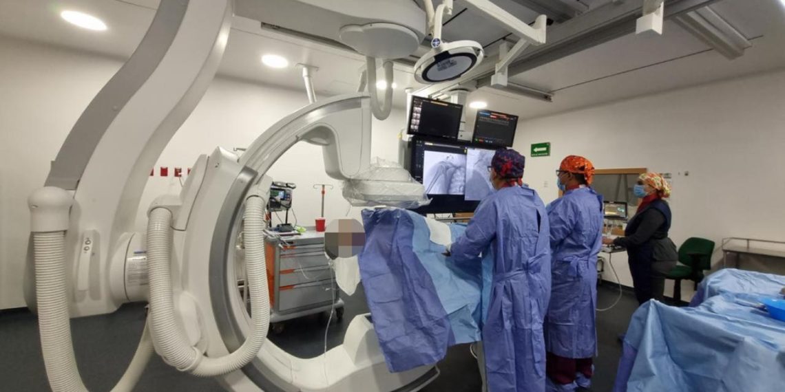 En el HGR No. 2, la sala cuenta con un angiógrafo de última generación, capaz de obtener imágenes en 360 grados y en tiempo real del sistema vascular, herramienta esencial para la toma de decisiones clínicas y terapéuticas.