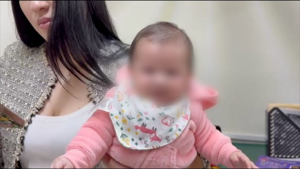 Tras un embarazo de alto riesgo, Diana “N”, originaria de la capital del Estado, quien fue atendida de manera oportuna e integral en esta unidad hospitalaria, sonríe al jugar con su pequeña hija, de tan solo cuatro meses, quien nació el pasado 28 de septiembre del 2023, en el Hospital de Gineco Obstetricia (HG0) No. 15, del Instituto Mexicano del Seguro Social (IMSS) Chihuahua.