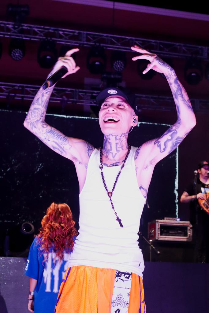 Compartió el escenario con sus fans y el ambiente de júbilo se extendió durante toda la presentación del inigualable rapero que se llevó el corazón del público local y sus visitantes, en Parral.