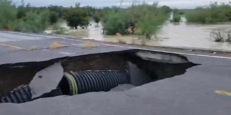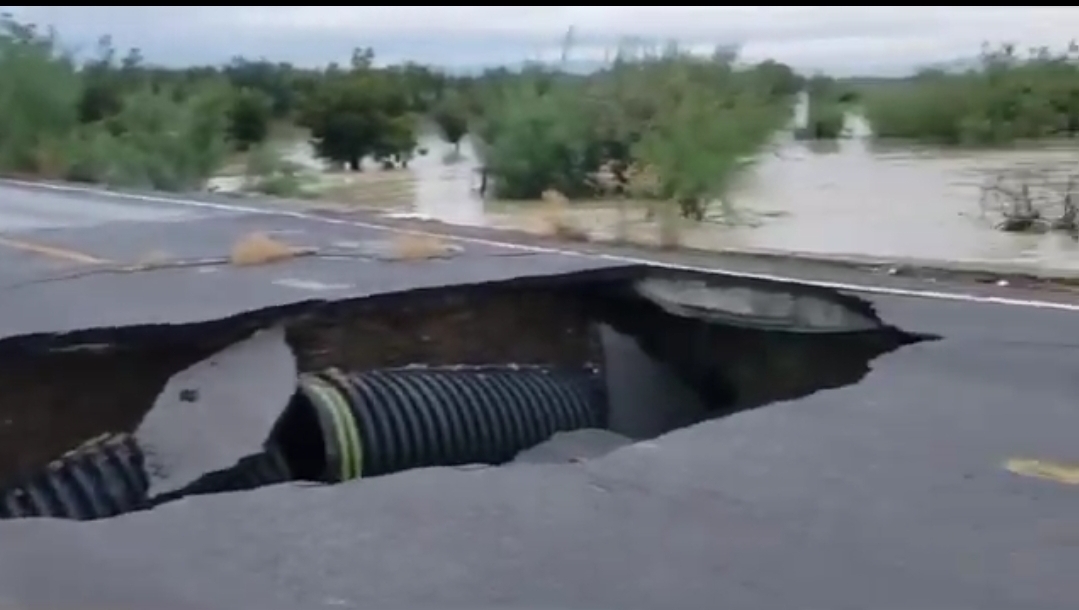 Las fuertes lluvias del sábado y domingo provocaron inundaciones en varias ciudades del Estado, así como en tramos carreteros, como el caso del que conduce de Ojinaga a Coyame donde se abrió un gran socavón.