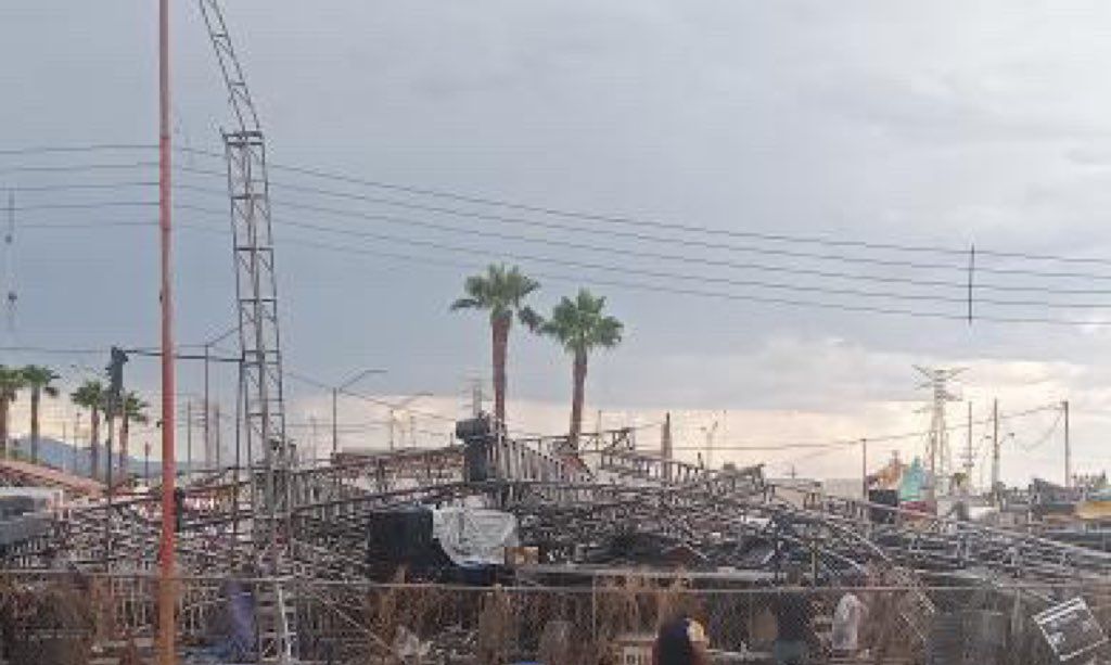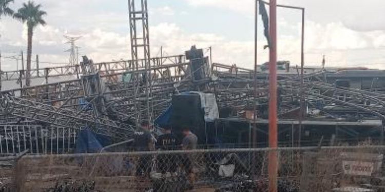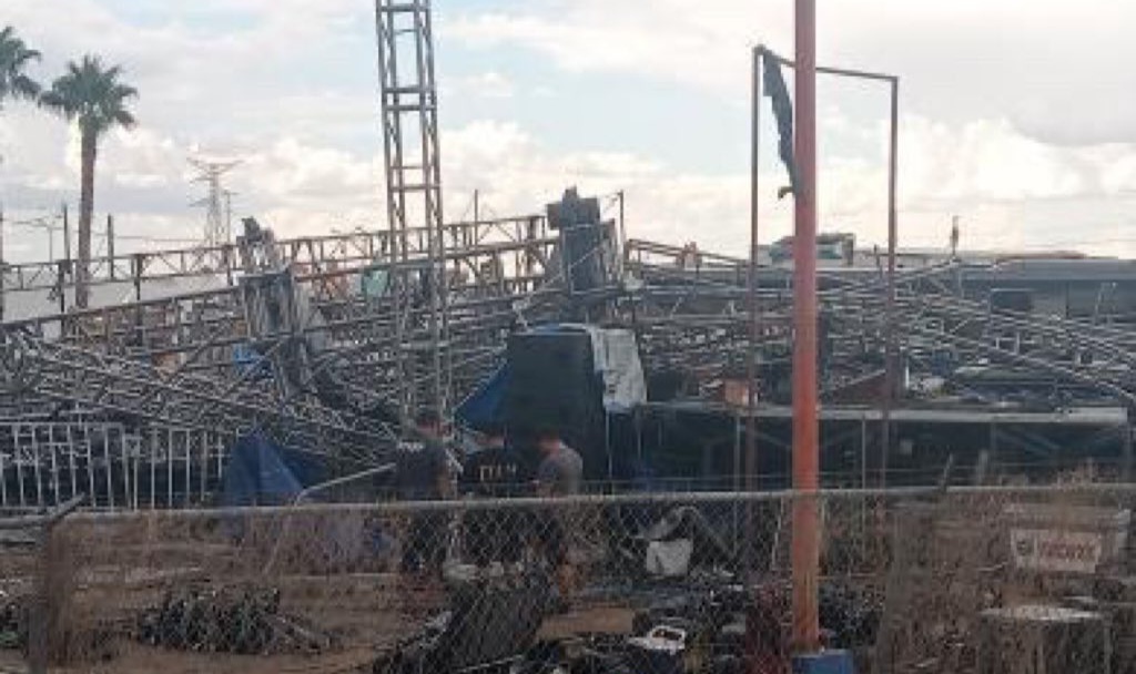 Fuertes vientos provocaron el colapso del escenario de la Feria San Pedro y San Pablo, sede del concierto de Edén Muñoz este 29 de junio en Meoqui, Chihuahua.