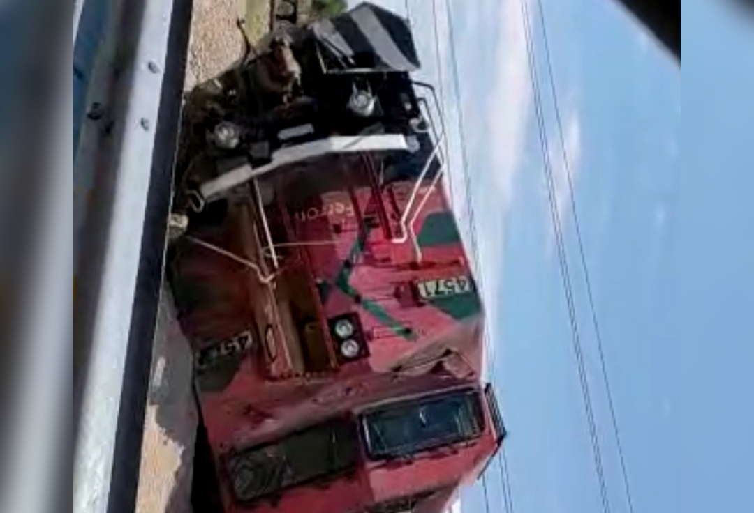 La locomotora comenzó a derramar miles de litros de combustible, lo que representó una zona de riesgo y, hasta el mediodía de este domingo, la autoridades no habían logrado levantar la pesada unidad.