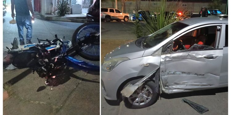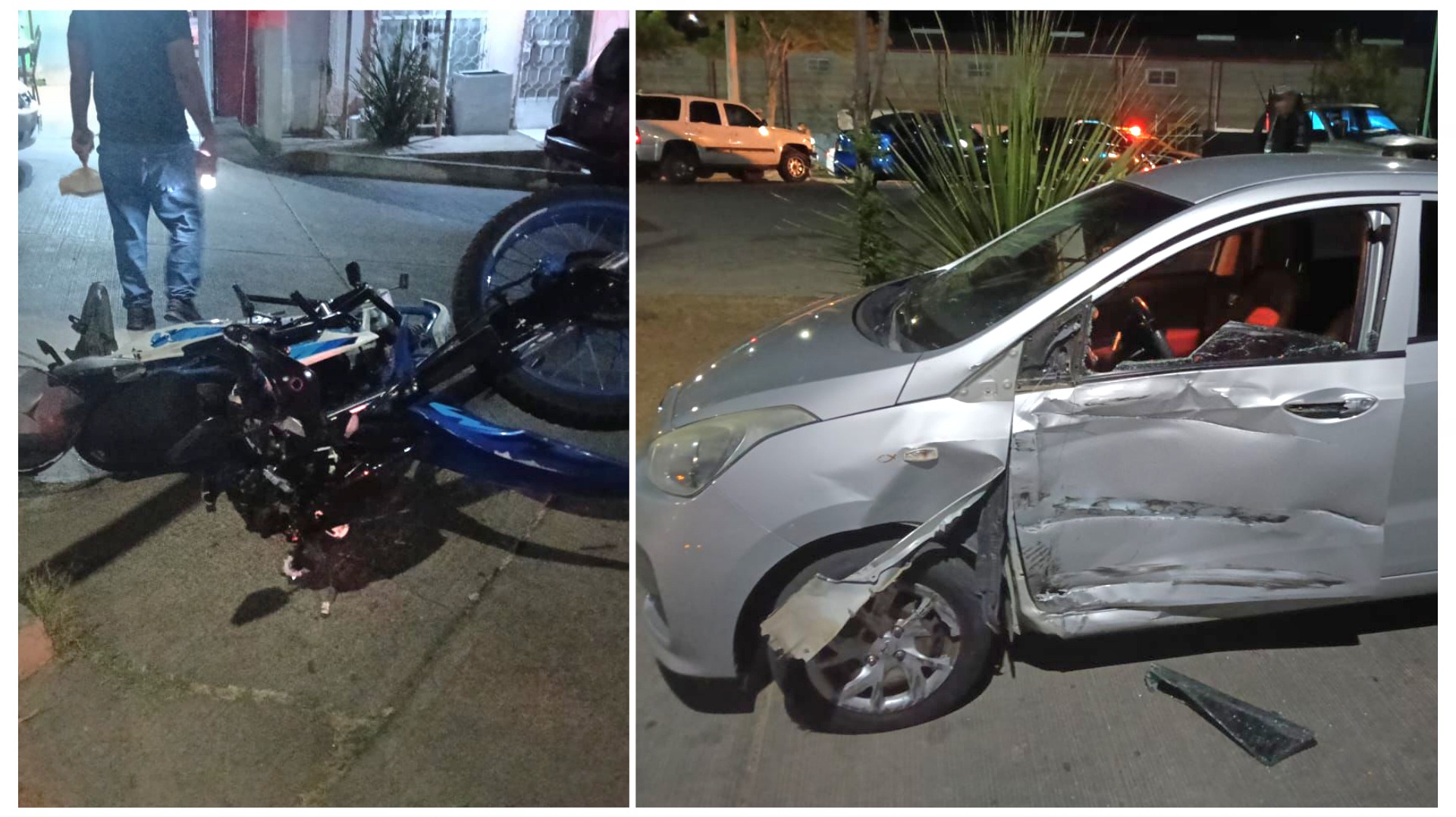 Se trató de un choque protagonizado por un motociclista identificado como Jesús Yahir O. P., quien, al circular a la altura del Fraccionamiento San Rafael, se impactó contra un sedan Hyundai Grand i10, modelo 2018, color gris. conducido por Jesús Gregorio D. P.