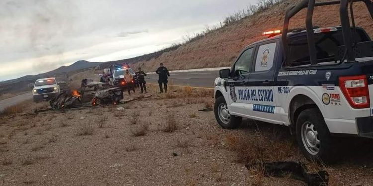 Fue la altura del kilómetro 22 donde policías de la Secretaría de Seguridad Pública del Estado, destacamentados en Satevó, así como paramédicos, atendieron el reporte de un choque y, al llegar, encotnterom acudieron un vehículo en llamas en llamas.