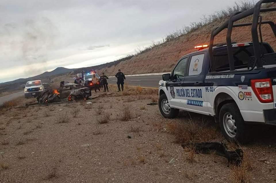 Fue la altura del kilómetro 22 donde policías de la Secretaría de Seguridad Pública del Estado, destacamentados en Satevó, así como paramédicos, atendieron el reporte de un choque y, al llegar, encotnterom acudieron un vehículo en llamas en llamas.