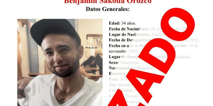 Como resultado de la activación de los protocolos de búsqueda, la Fiscalía de Distrito Zona Sur localizó sano y salvo a Benjamín S.O., de 34 años de edad, quien contaba con reporte de ausencia interpuesto el 18 de noviembre de presente año en ciudad Jiménez.
