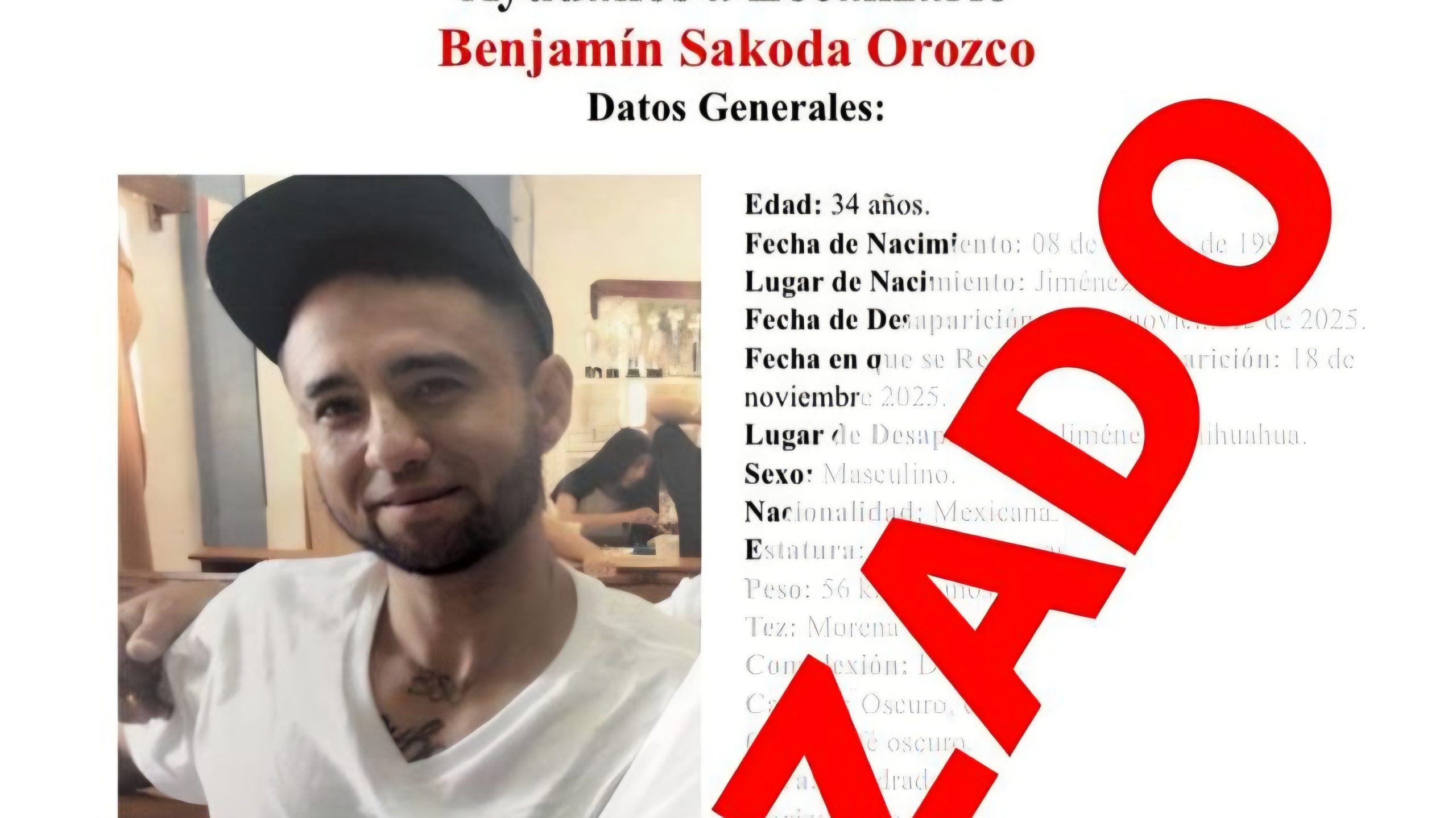 Como resultado de la activación de los protocolos de búsqueda, la Fiscalía de Distrito Zona Sur localizó sano y salvo a Benjamín S.O., de 34 años de edad, quien contaba con reporte de ausencia interpuesto el 18 de noviembre de presente año en ciudad Jiménez.