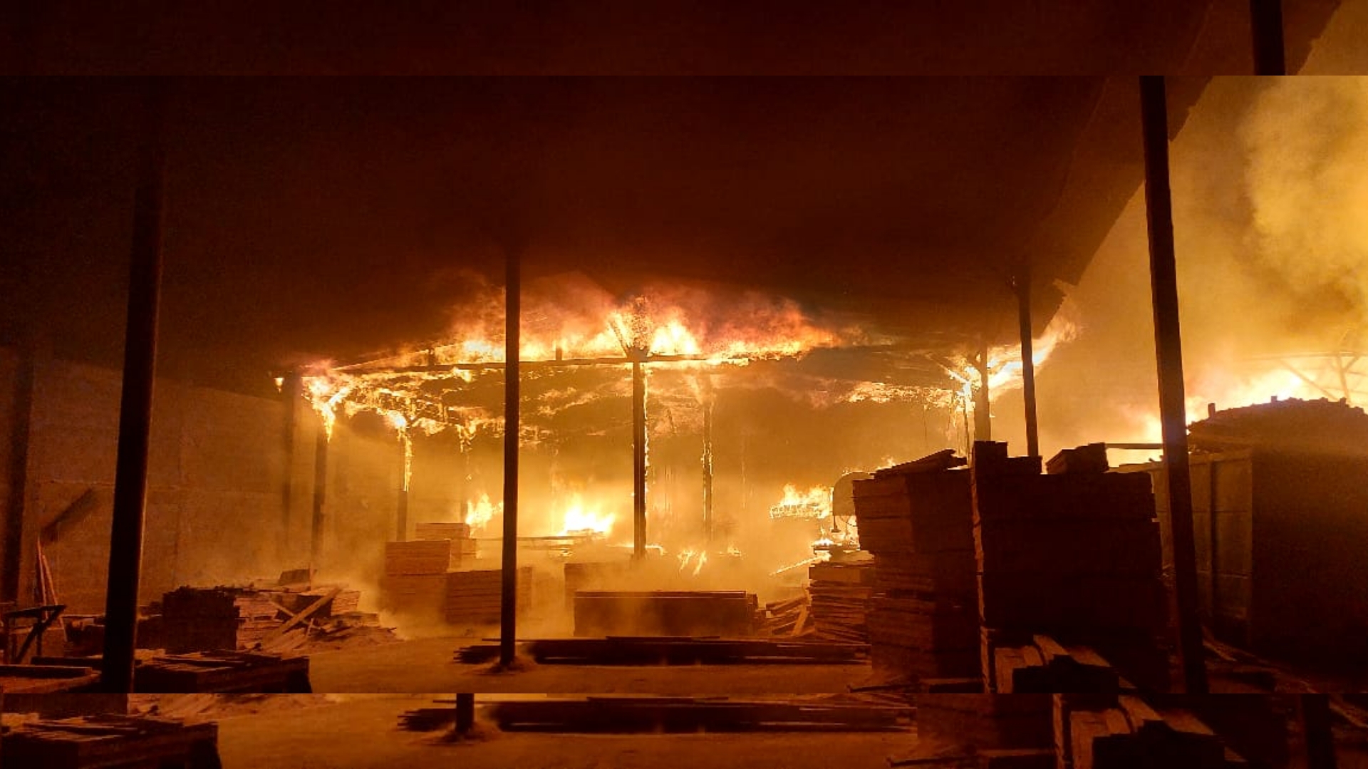 Se registró un incendio en un aserradero ubicado frente al Centro de Adiestramiento de Combate Individual Regional (CACIR) del 76 Batallón de Infantería, en la carretera a Santa Bárbara.
