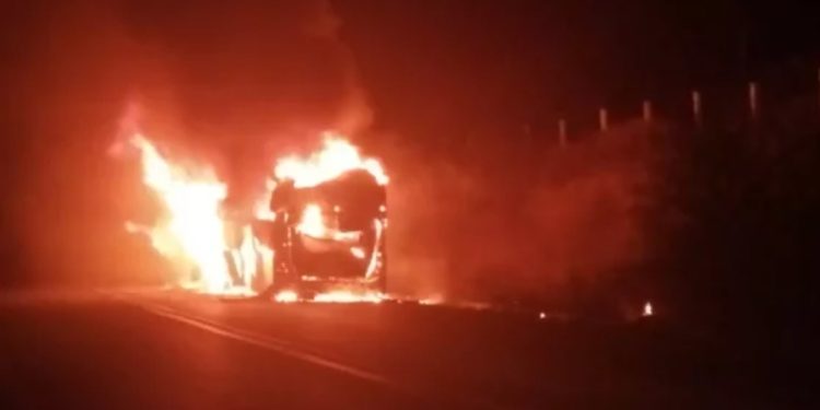 Un camión de pasajeros procedente de Ciudad Juárez, se incendió a la altura del kilómetro 130 de la vía corta a Chihuahua esta mañana.