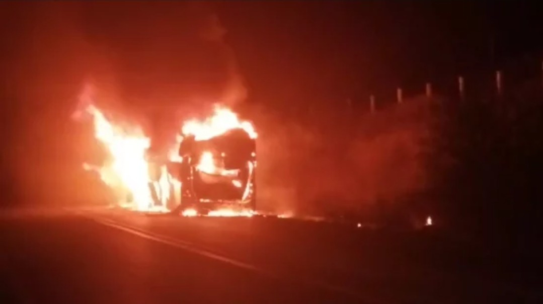 Un camión de pasajeros procedente de Ciudad Juárez, se incendió a la altura del kilómetro 130 de la vía corta a Chihuahua esta mañana.