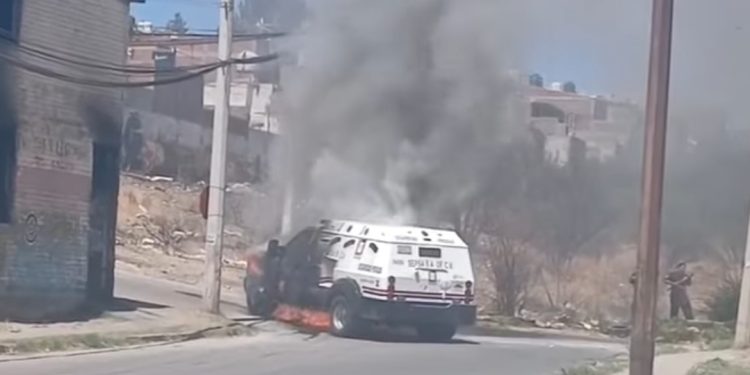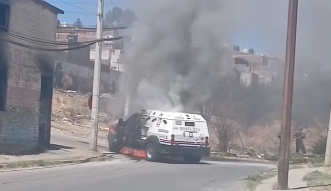 Una unidad transportadora de valores se quemó al mediodía de este jueves en la colonia El Milagro, por lo que el Heroico Cuerpo de Bomberos acudió en auxilio