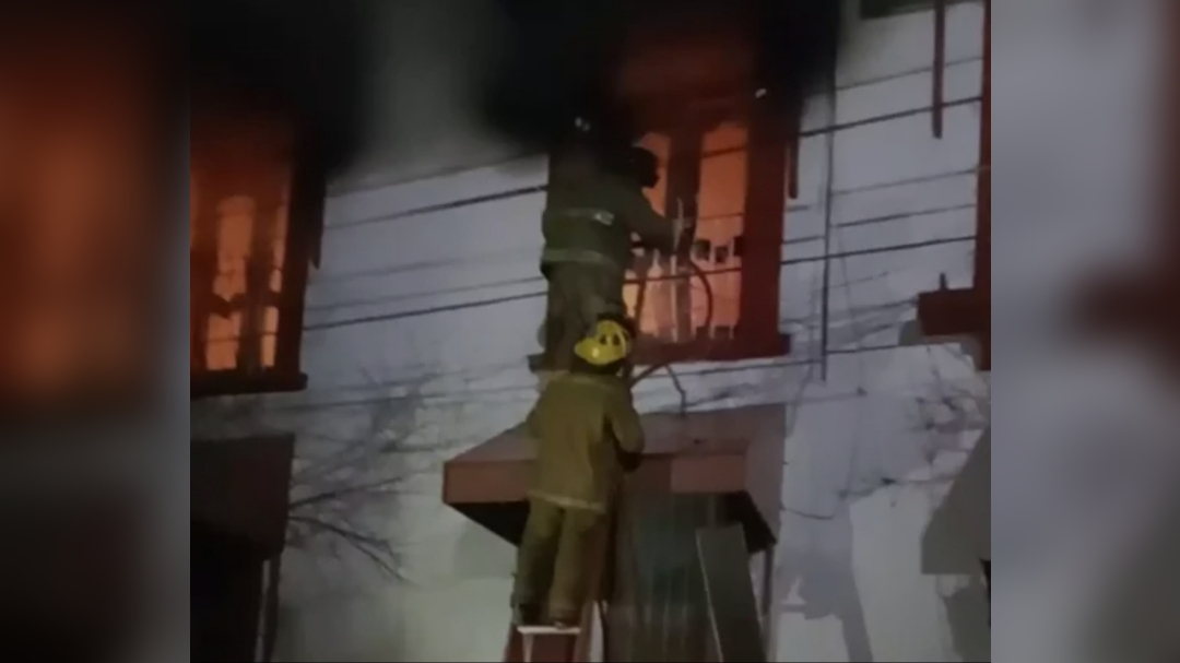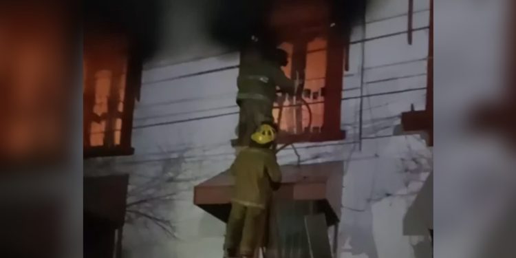 Los bomberos intentaron ingresar por las ventadas superiores de la alcaldía para tratar de controlarlo.