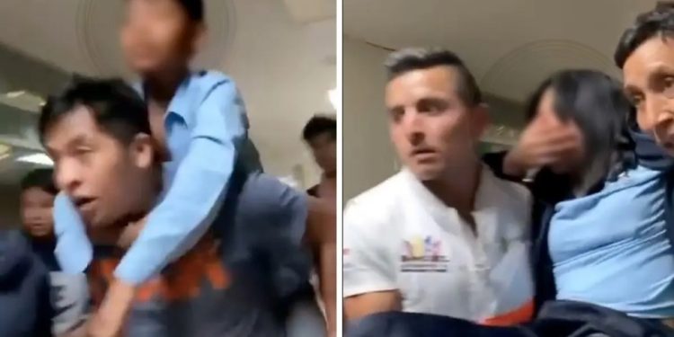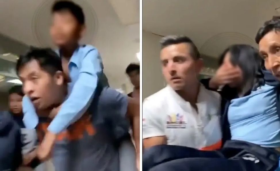En las imágenes se observa que algunos de los estudiantes del turno vespertino, de entre 12 y 15 años, llegan inconscientes al Hospital Rural del IMSS de Bochil en brazos de sus padres.