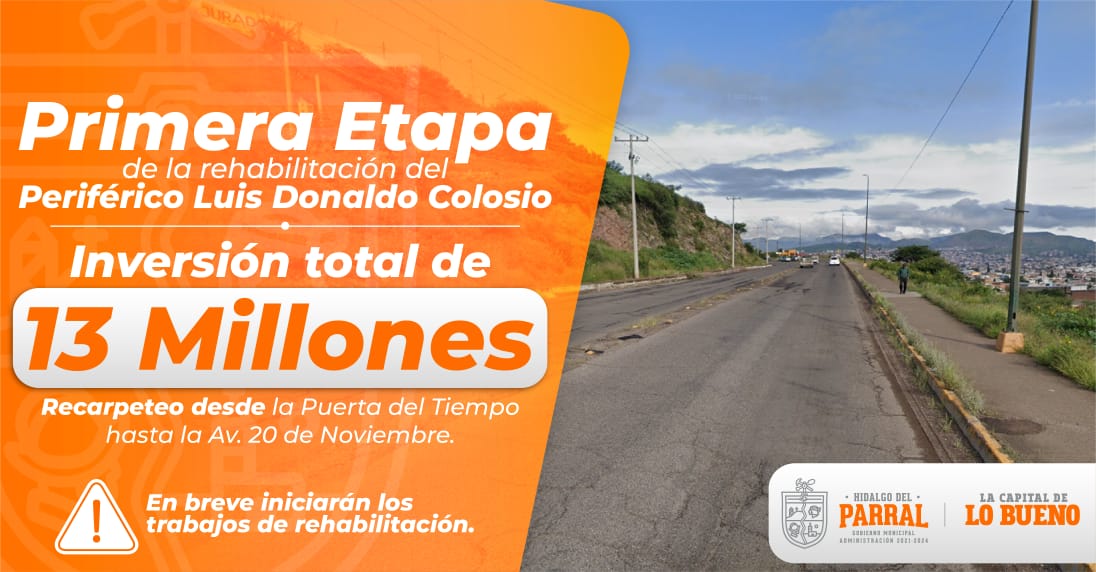 Luego de que fuera anunciado por el alcalde César Peña la liberación del recurso para rehabilitar la primera etapa del Periférico Sur Luis Donaldo Colosio, informó que serán 13 millones de pesos los que se invertirán para recarpetear desde la Puerta del Tiempo hasta la avenida 20 de Noviembre.