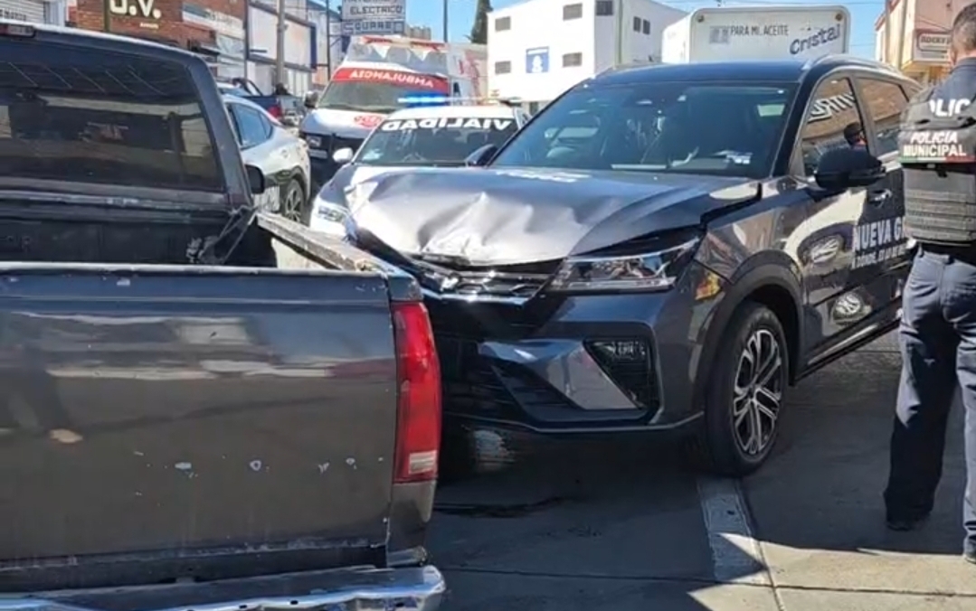 El accidente ocurrió cerca de la avenida Zaragoza, hasta donde acudieron elementos de Vialidad Municipal para atender la situación. En el lugar se encontraba una camioneta nueva con el frente completamente dañado, así como el vehículo que habría provocado el percance.