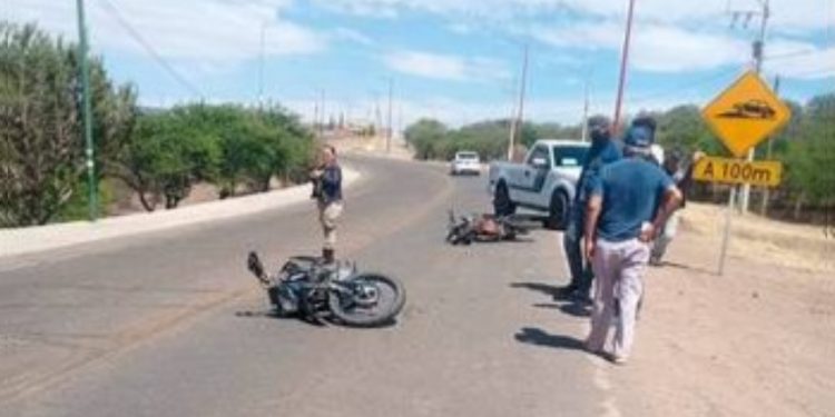Dos motocicletas chocaron en la entrada a San Francisco Del Oro, específicamente a la altura del CETis 159, debido a que, a una de ellas se le reventó una llanta, invadió el carril contrario y provocó el incidente.